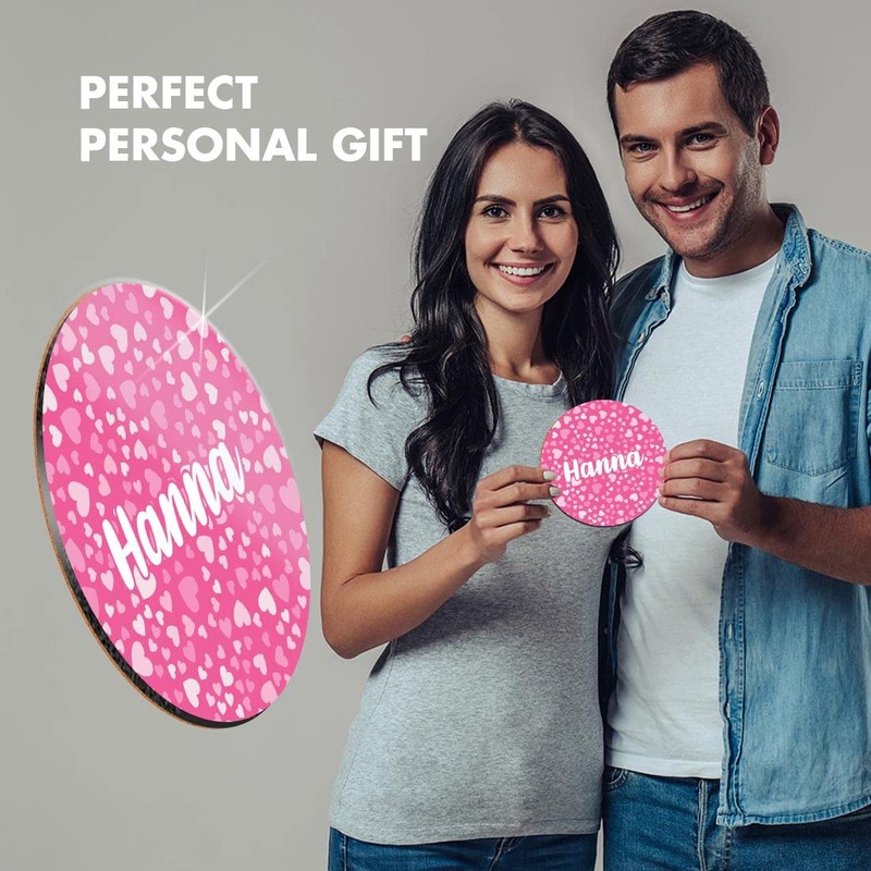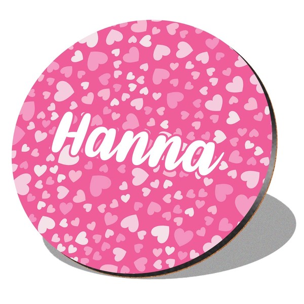 1 x Round Coaster - Name Hanna Pink Hearts Love Letter Lettering Initial Cork Backed MDF Glossy Tea Coffee Accessory #268573