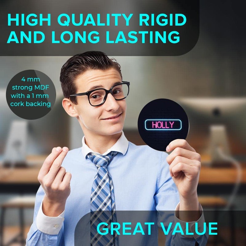 1 x Round Jumbo Size Coaster 12cm Neon Sign Design Holly Name Cork Backed MDF Glossy Tea Coffee Accessory #353035