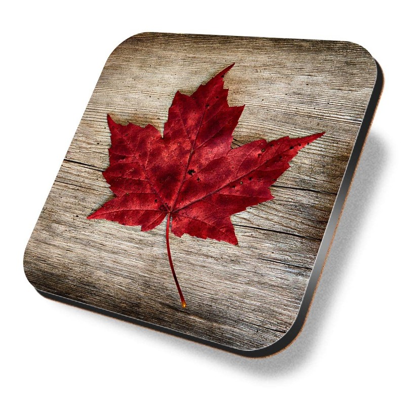1 x Square Coaster - Canada Maple Leaf Travel Flag Cork Backed MDF Glossy Tea Coffee Accessory #50439