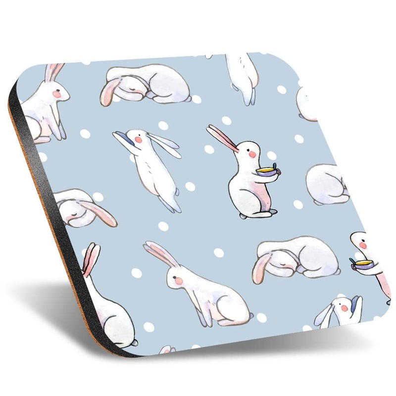 1 x Square Jumbo Size Coaster 12cm Cute Easter Bunny Pattern Rabbits Cork Backed MDF Glossy Tea Coffee Accessory #50658