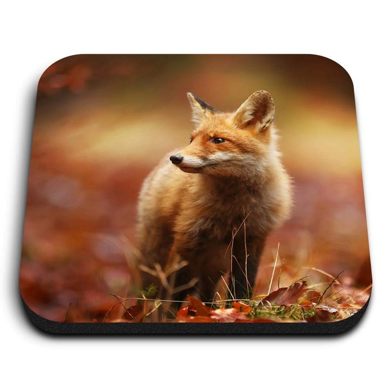 1 x Square MDF Fridge Magnet - Cute Ginger Fox Autumn Wildlife 8116