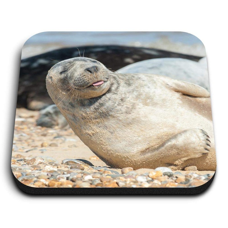 1 x Square MDF Fridge Magnet - Cute Grey Seal Pup Sunbathing 3648