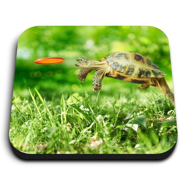 1 x Square MDF Fridge Magnet - Tortoise Turtle Jumping Frisbee 14390