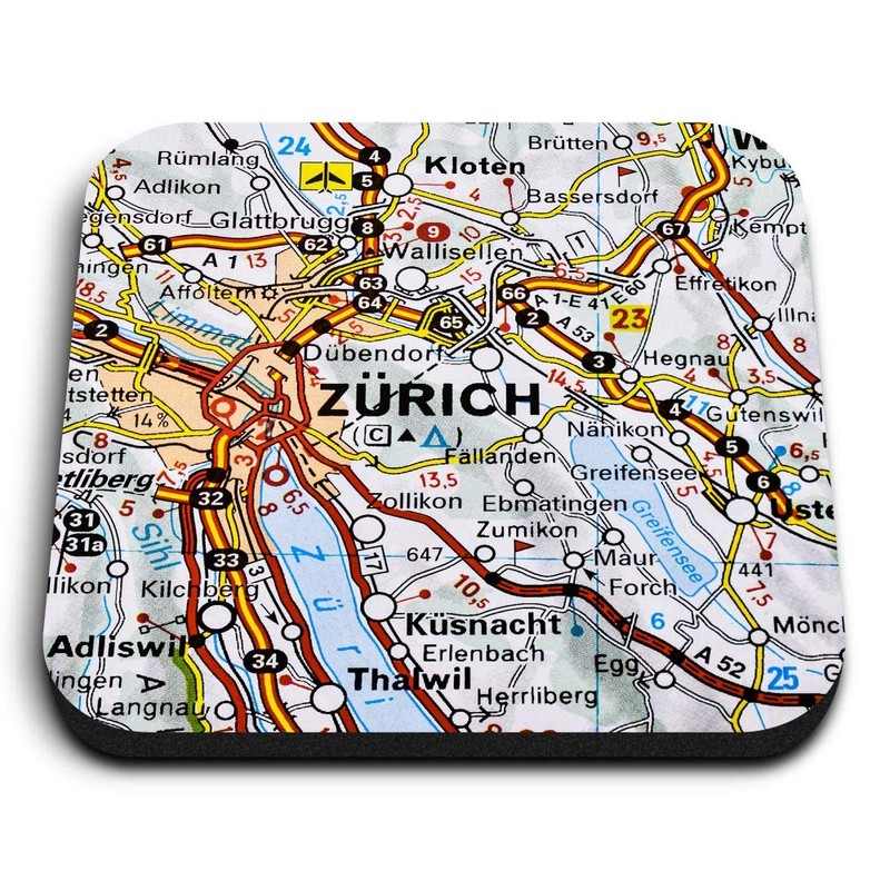 1 x Square MDF Fridge Magnet - Zurich City Switzerland Europe Map 46533