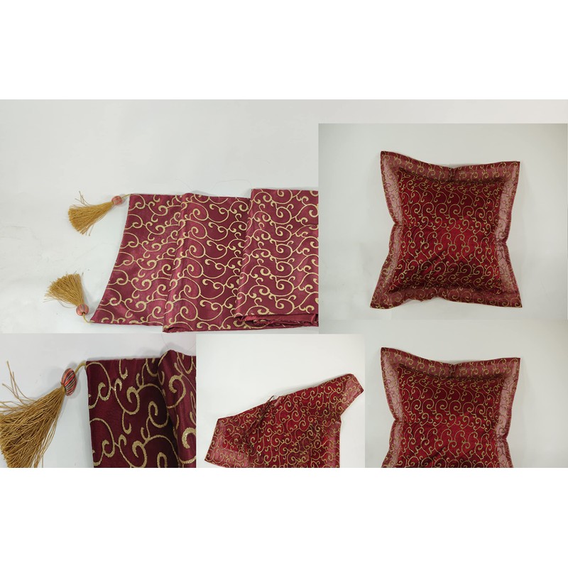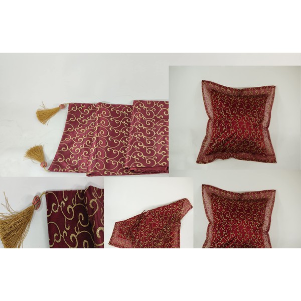 1 x table runner and 2 x cushions in a set, dark red with floral pattern, table runner, cushion decorative set