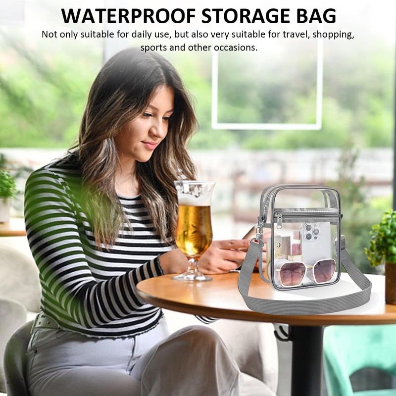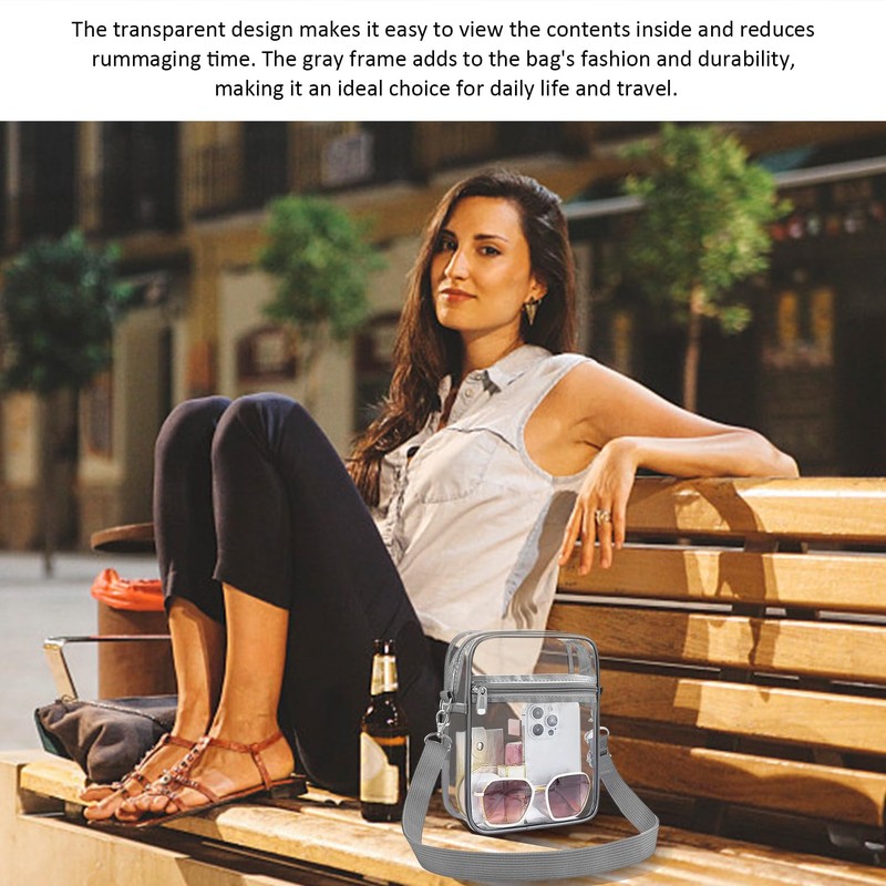 1 x transparent shoulder bag, 1 x snap storage bag, adjustable shoulder strap, waterproof storage bag, portable purse, travel storage bag, Transparent grey trim, Modern