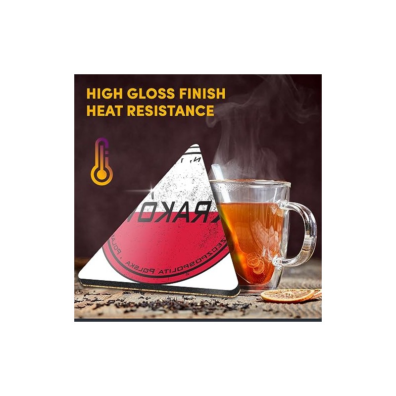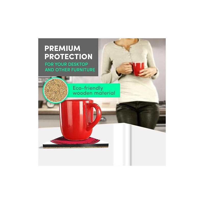 - Strong MDF Wood - The coaster upper layer is a glossy printed image, the middle layer is MDF wood, with a natural cork base to protect your dining table or office desk.