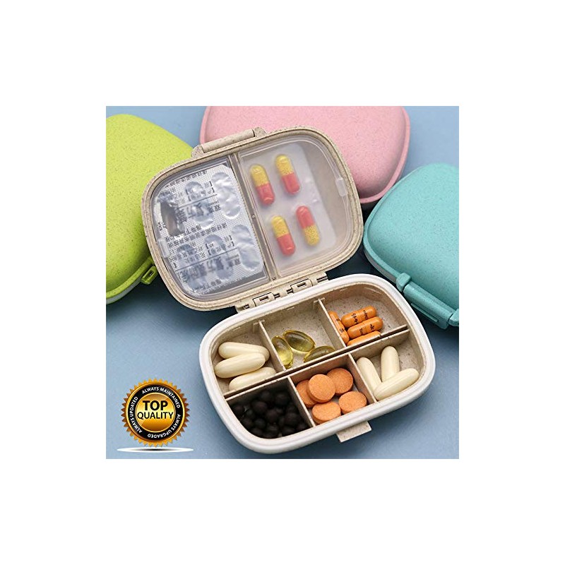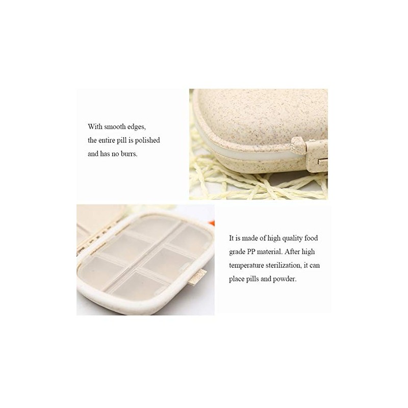 1 x Wheat Straw Pill Box Fashion Travel Pill Organizer Mini Size Portable Vitamin Container Safe Food Grade PP Material Double Layer Foldable Design 8 Compartments