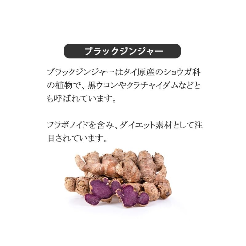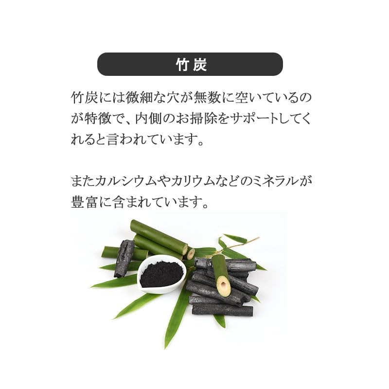 - ダブルの黒のチカラで内側からスッキリ! 竹炭の吸着+ブラックジンジャーの燃焼パワーで、毎日のスッキリ習慣をサポート! 竹炭には、無数の穴があり余分なモノを吸着し、内側のお掃除をサポートしてくれると言われています。 また、ダイエット素材として注目されるブラックジンジャーを配合。 ブラックジンジャーは、黒ウコンという名前でも知られています。 さらに、ダイエット時に不足しがちなビタミンCもプラスしました。