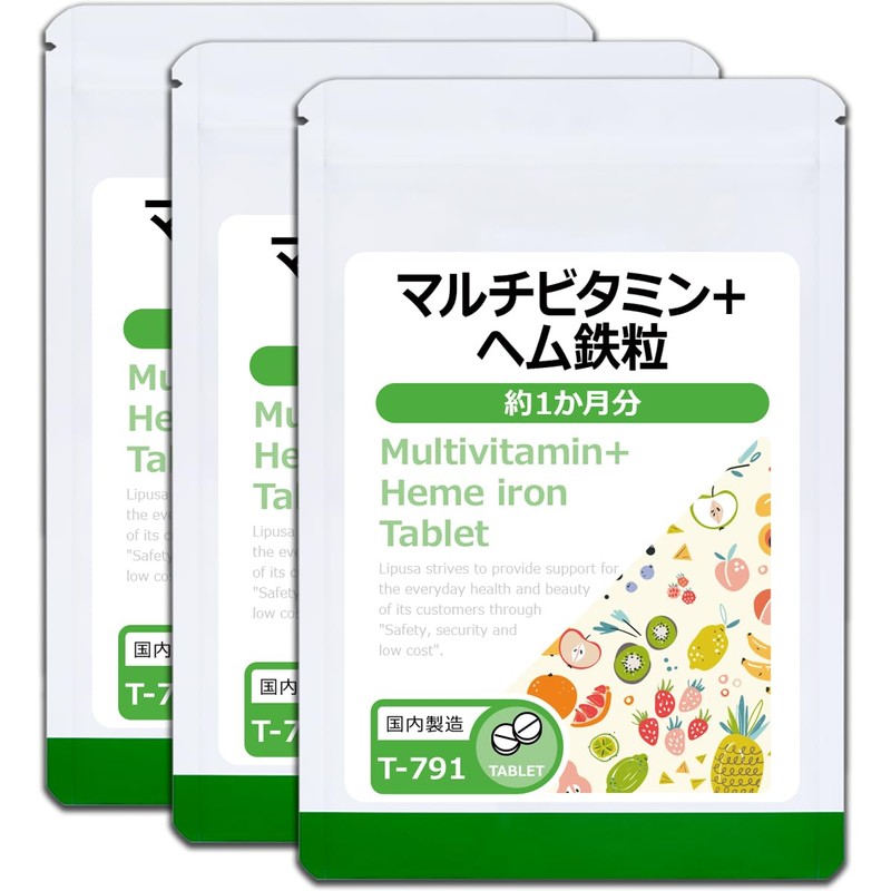 【リプサ公式】 マルチビタミン+ヘム鉄粒 約1か月分×3袋 T-791-3 サプリメント