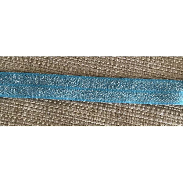 1 Yard 5/8” Light Blue Sparkle Glitter Fold Over Elastic Hair Ties