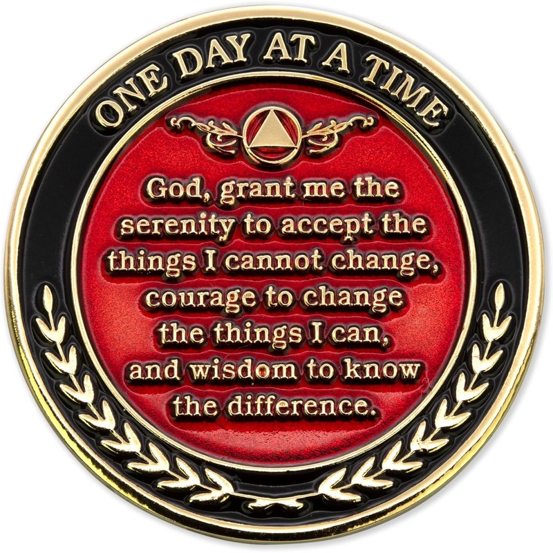 {Inspirational Back Design} Features "One Day at a Time" and the AA Serenity Prayer.