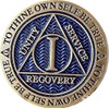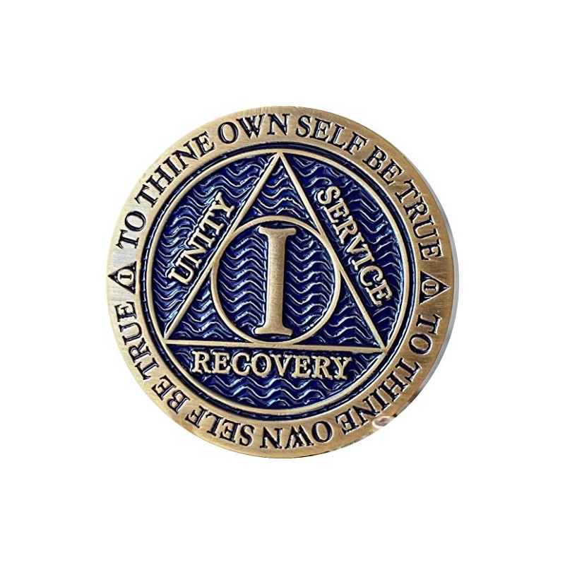 • 1 Year AA Medallion In Reflex Design Antique Bronze and Blue With Serenity Prayer On The Back