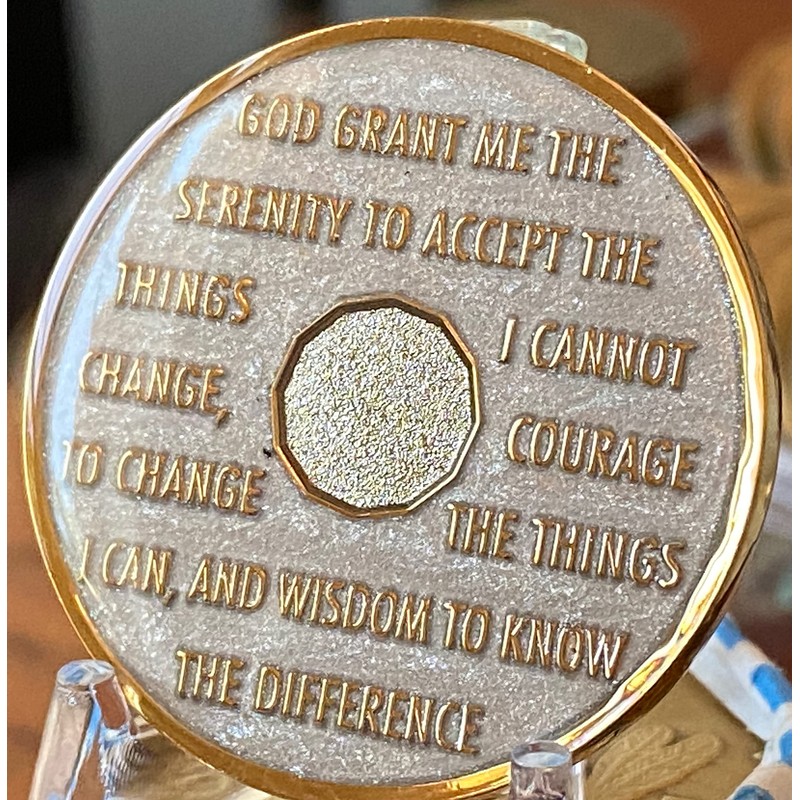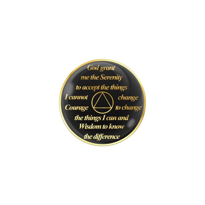 - Tri-Plate Sobriety Chip With Serenity Prayer on Back. Glass like epoxy dome.
