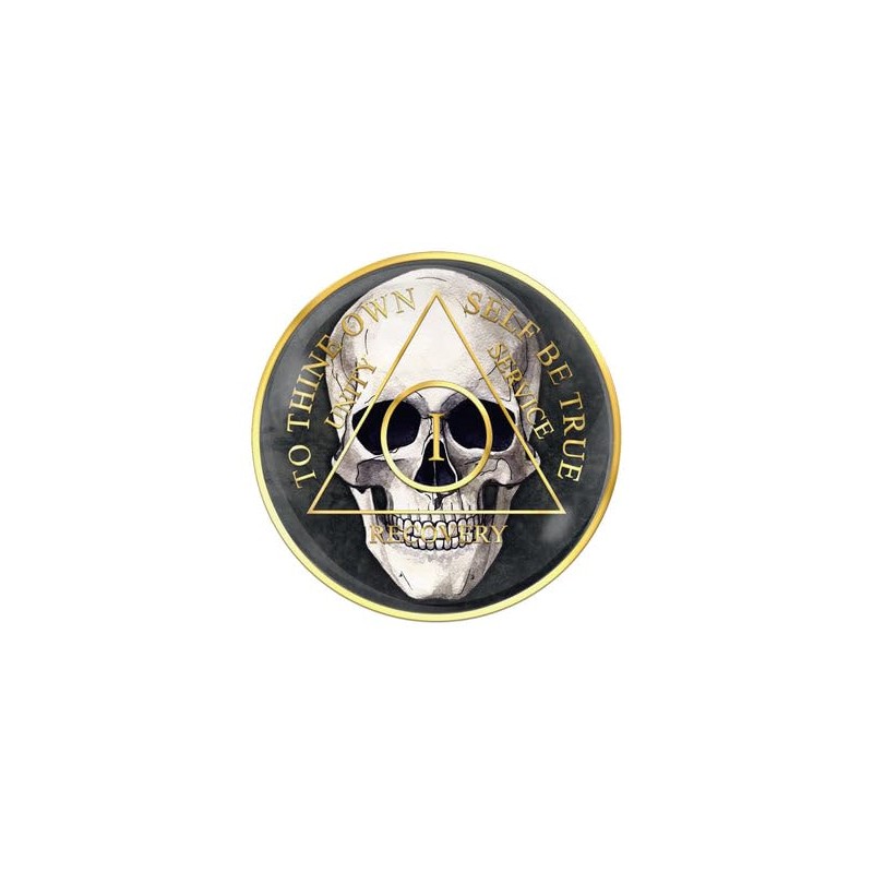 - 1 Year AA Medallion Skull Design. White and Black Color