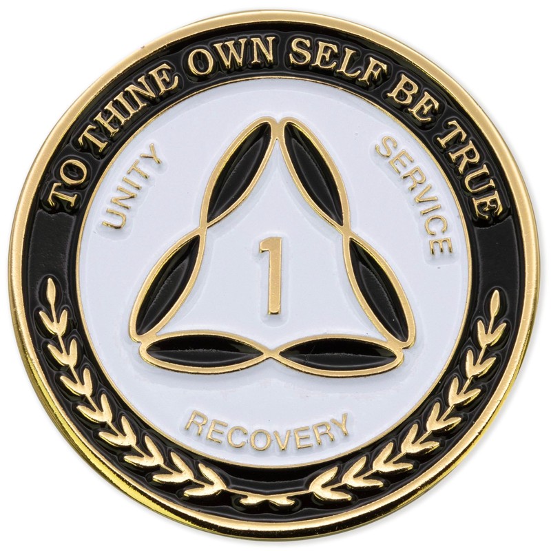1 Year AA Coins - Sobriety Mint Infinity Triangle Gold Plated AA Recovery Medallions/Chips - White