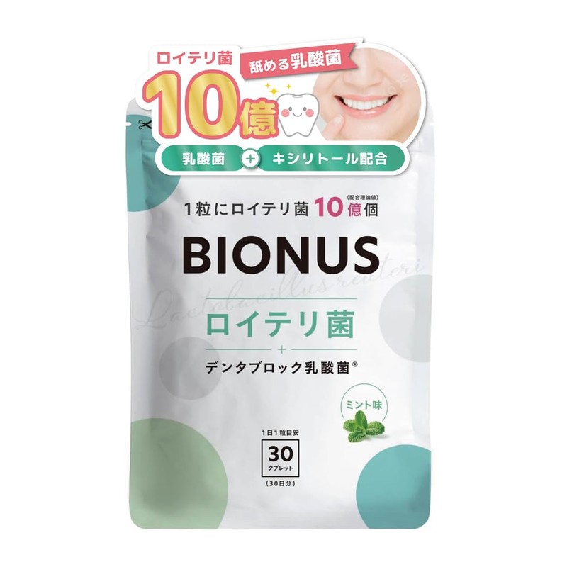 ビオナス ロイテリ菌 タブレット キシリトール 生きた 乳酸菌 10億個 デンタブロック乳酸菌 エチケット 小型 サプリ プロバイオティクス ミント味 1日1粒 30日分