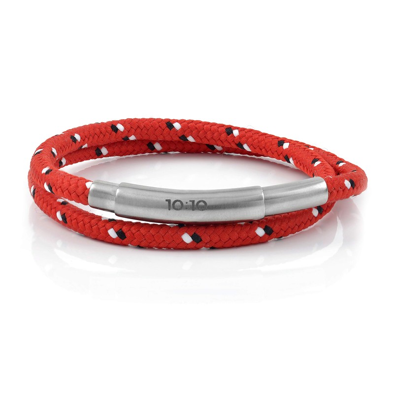 10:10 Ocean Series Double Loop Leather and Fabric Strap with 4mm Diameter Adjustable Stainless Steel Clasp Adjustable Bracelet, Leather