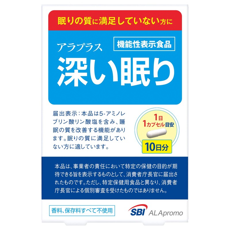 - 「アラプラス 深い眠り メンタルケア」は、睡眠の質を改善し、一時的な気持ちの落ち込みを緩和するサプリメントです。今の眠りに満足できない方や、ストレスを感じている方におすすめのサプリメントです。