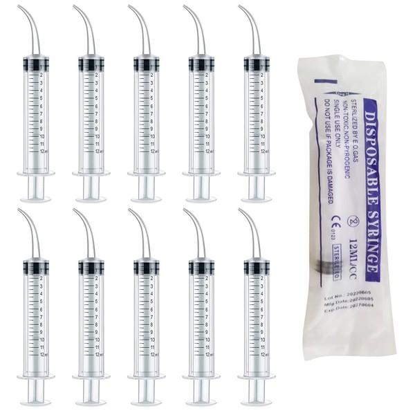 ペット用シリンジ 10本セット 12ml 猫 犬用品 給水 給食 投薬器 流動食 哺乳器 流動食注入器 注入器 曲げノズル 液状の薬、錠剤やカプセル適用 プラスチック 針なし 口腔洗浄器 (12ml)