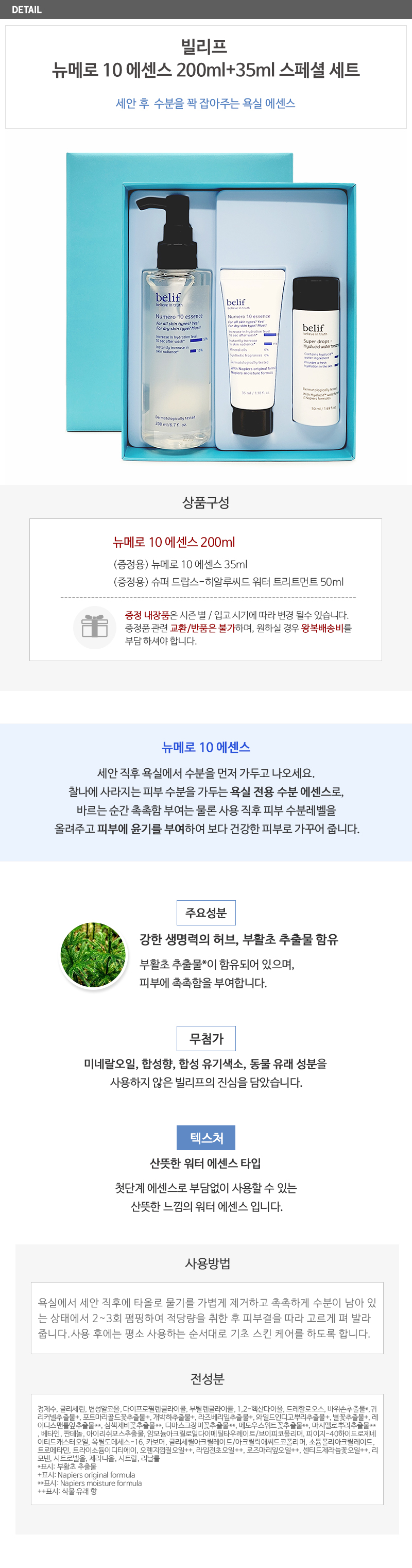 빌리프 뉴메로 10 에센스 200ml+35ml 스페셜 세트 Belif Numero 10 Essence 200ml+35ml Special Set