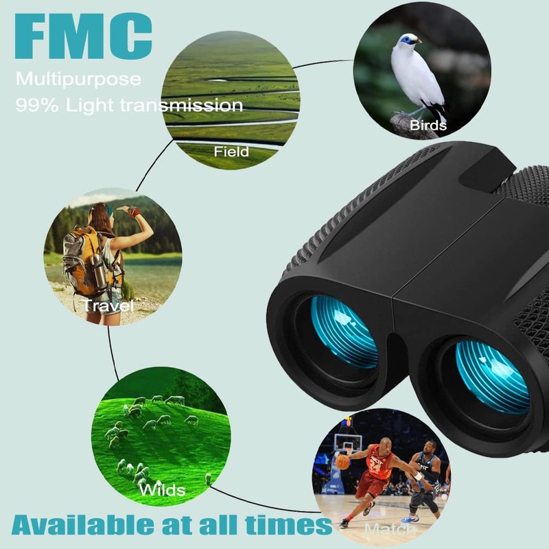 • 【25MM OBJECTIVE LENS PROVIDES LARGE FIELD OF VISION】: Equipped with 25mm large eyepiece, 10x25 binoculars provide more comfortable and larger field of vision. 273 feet/1000 yards wide field of vision, Coating with FMC Broadband coating and premium BAK4 principle, it ensure imaging verisimilar It is very suitable for opera, bird watching, camping, traveling, watching wildlife, football match, cruising or other outdoor activities.