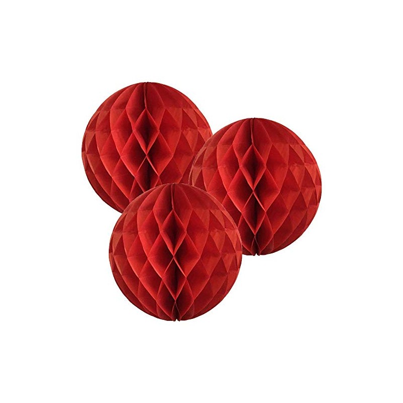 10"(25CM) Paper Honeycomb Balls (Pack of 3) Several Colours Available (Red)
