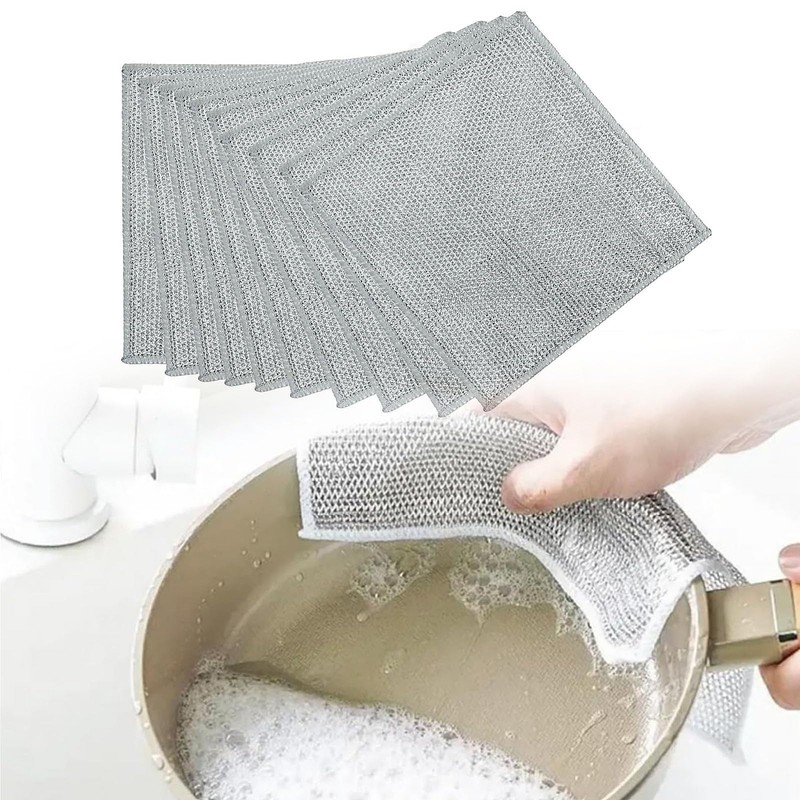 ふきん ワイヤーふきん 金属 10個パック 厚みと幅の拡大 油汚れ クロス 食器拭き キッチン 二層再利用可能 濡れても乾いても使用可能 25×25cm ...