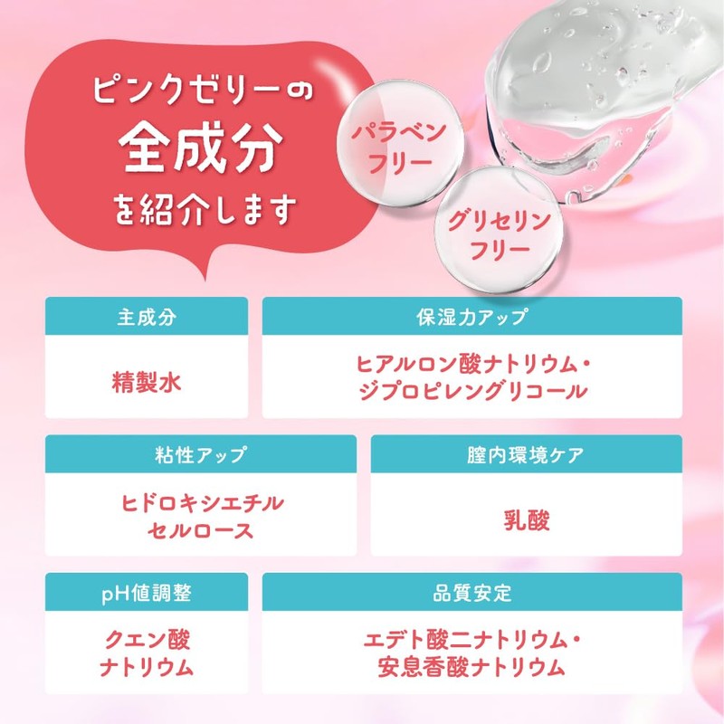 - ジュンビーのピンクゼリーは、日本人女性のカラダへの優しさと理想的な環境をサポートすることを最優先に考え「内容量1.7ml/本」「pH4.0の弱酸性」「浸透圧260~370mOsm」「自然でなめらかな低粘度ゼリー」という品質にこだわっています。