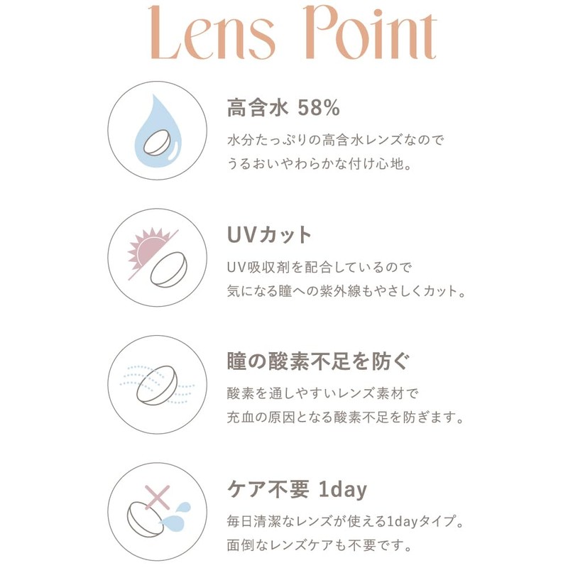 - 【高含水58%】水分たっぷりの高含水レンズなので、うるおいやわらかな付け心地