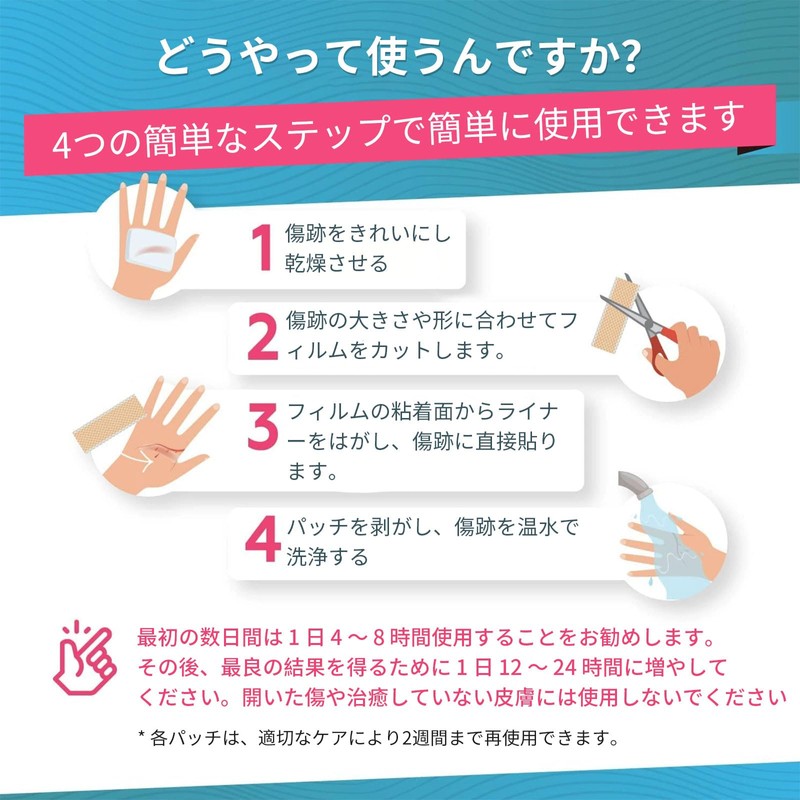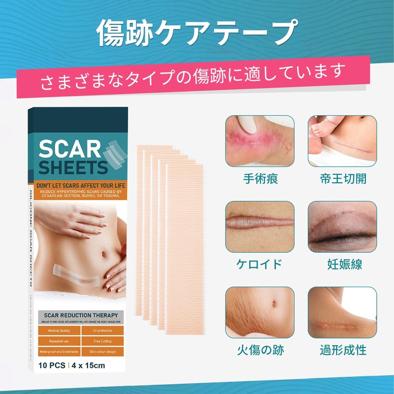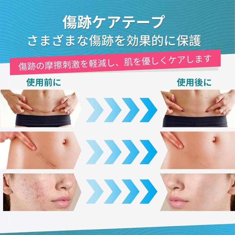 • 【傷あとを守る】肌に優しいシリコンテープを採用。伸縮性の強いシリコンテープなので、紫外線などの外部刺激から保護し、傷あとを目立ちにくくします。