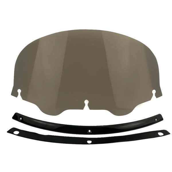 10.5inch Smoke Windshield + Gloss Black Windshield Trim Windscreen Compatible for 1996-2013 Harley Davidson Touring Street Glide Electra Glide