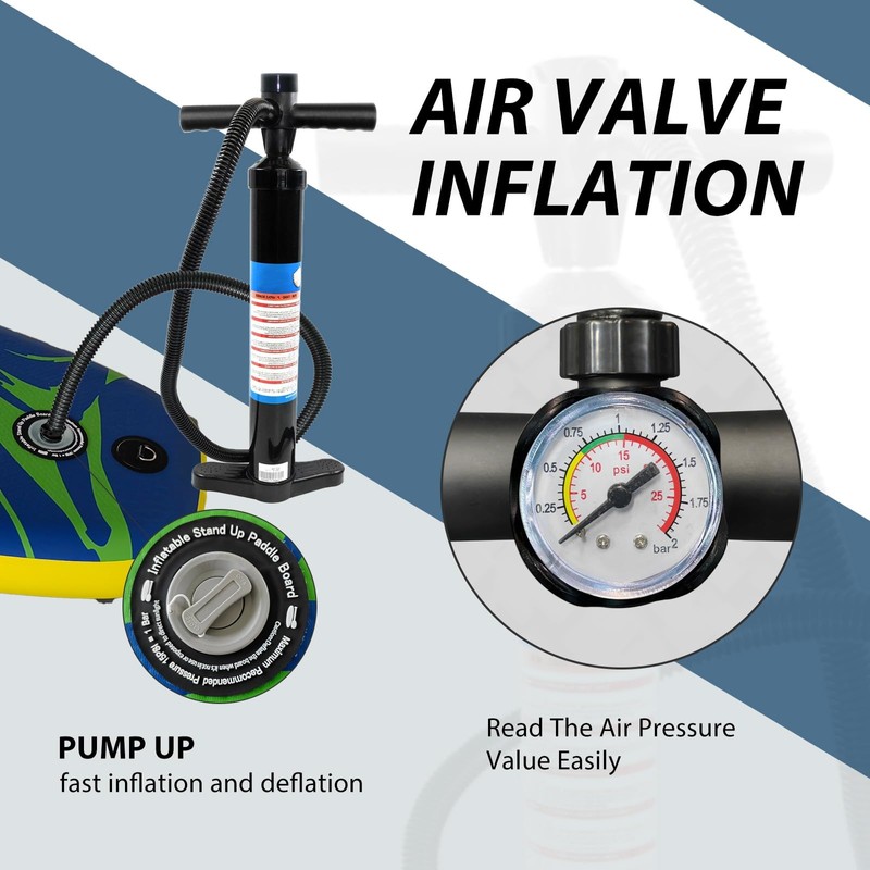 - Safe and Secure: The inflatable paddle board features a non-slip textured surface that enhances stability while standing. Furthermore, it comes equipped with a safety leg rope to securely fasten you to the board, enhancing safety and providing peace of mind.