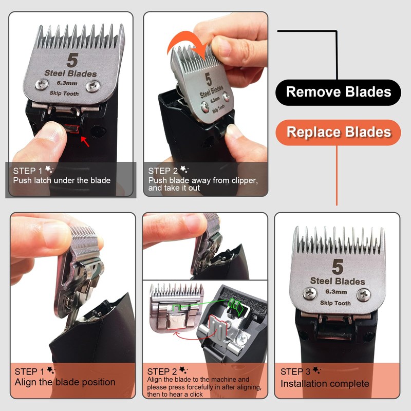 - ▶【Profession Technology】Compared with the conventional A5 blade, the skip-tooth blade allows hair to enter more easily, making it suitable for pets with lots of hair and long coats, and is more effective in cutting thick and long coats.