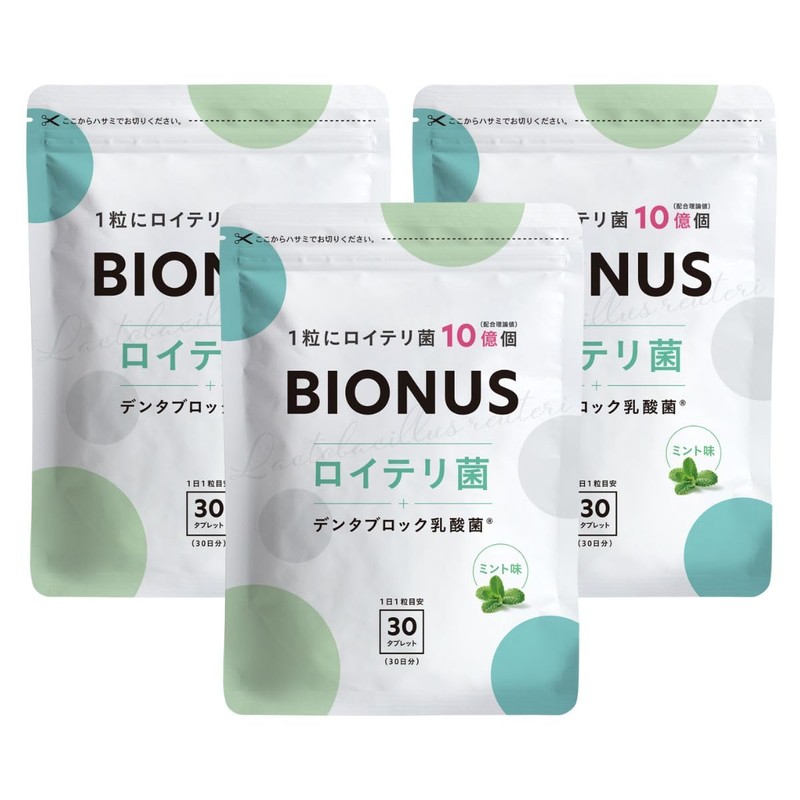 ビオナス ロイテリ菌 タブレット キシリトール 生きた 乳酸菌 10億個 デンタブロック乳酸菌 エチケット 小型 サプリ プロバイオティクス ミント味 90日分 3袋セット