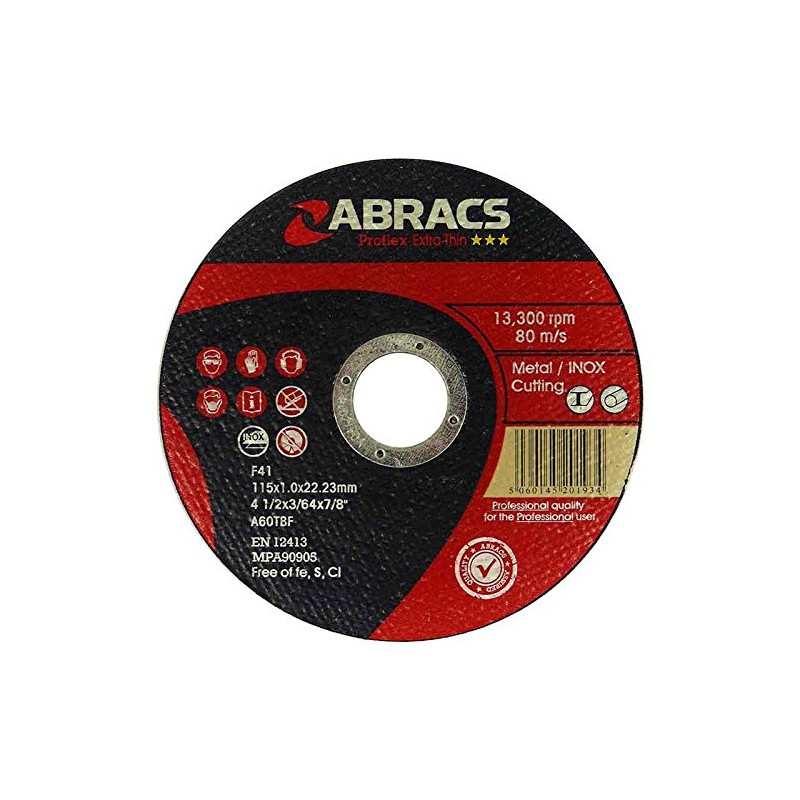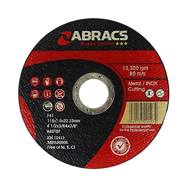 10 Abracs Proflex Trade Inox Extra Thin 115mm Cutting Discs supplied in a tin