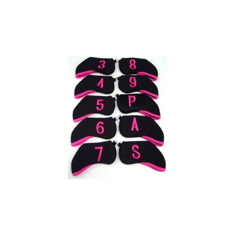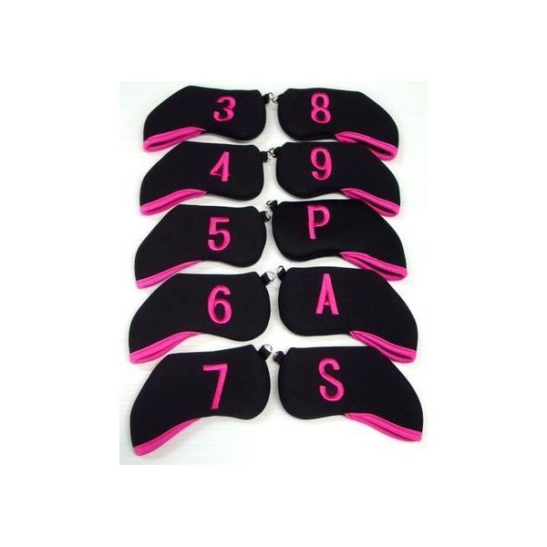 ネオプレーン ゴルフアイアンカバー10個セット (ブラック/ピンク)