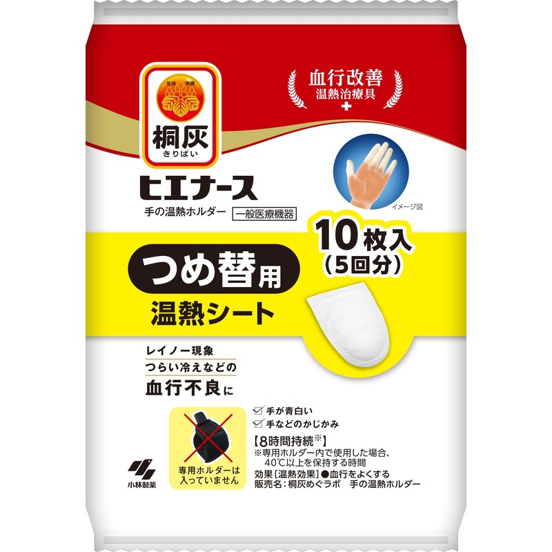 桐灰(きりばい) ヒエナース 手の温熱ホルダー 詰め替え用 温熱シート レイノー現象 つらい冷えなどの血行不良に 血行改善温熱治療具 詰替用 10枚入 小林製薬