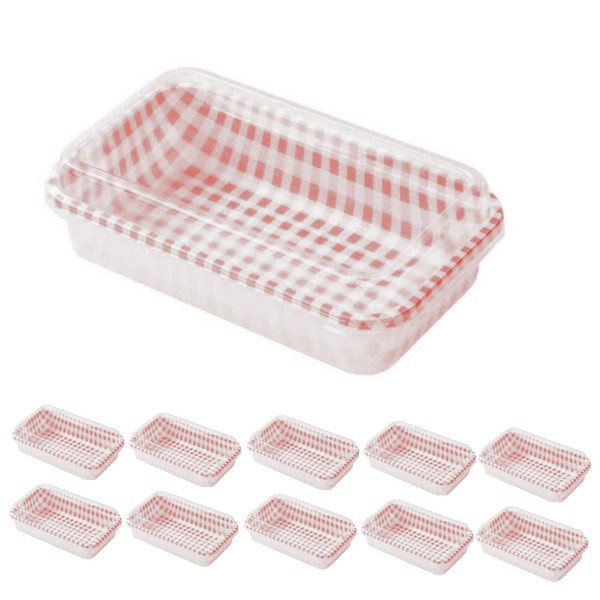 10枚入 デリカフードケース 使い捨てフードパック デリバリー テイクアウト ランチ 弁当箱 ピクニック/遠足本体・蓋セット(長方形,ピンク)