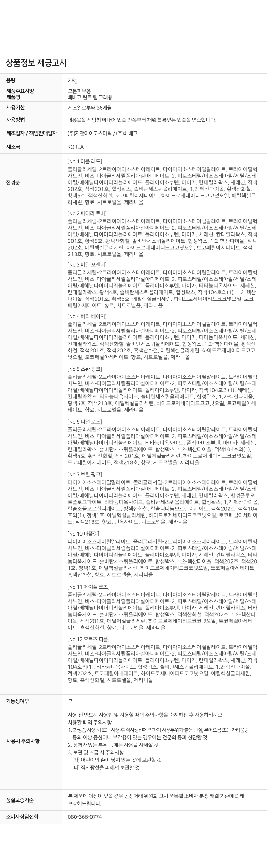 (베베코)틴트 립 크레용 (10컬러) (Bebeco) Tint Lip Crayon (10 Colors)