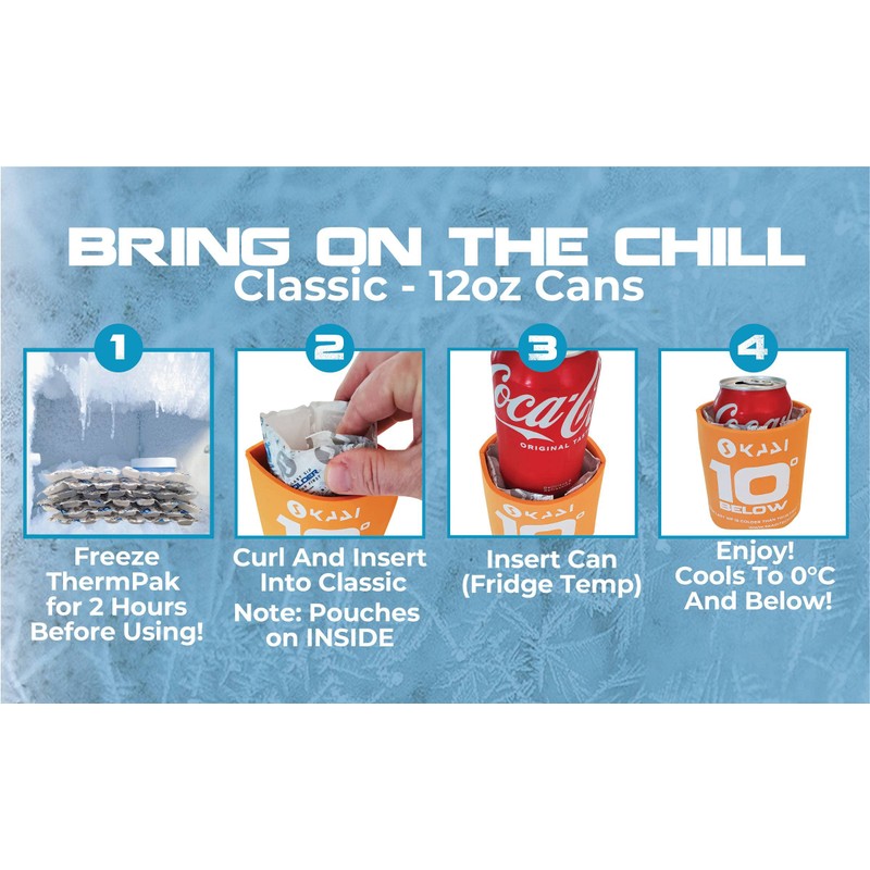 - FREEZE BEFORE USE: Included ThermPak must be frozen before use and can be re-used hundreds of times. USE WITH REFRIGERATED DRINKS: For best performance, cans and bottles should start at fridge temperature - not room temperature.