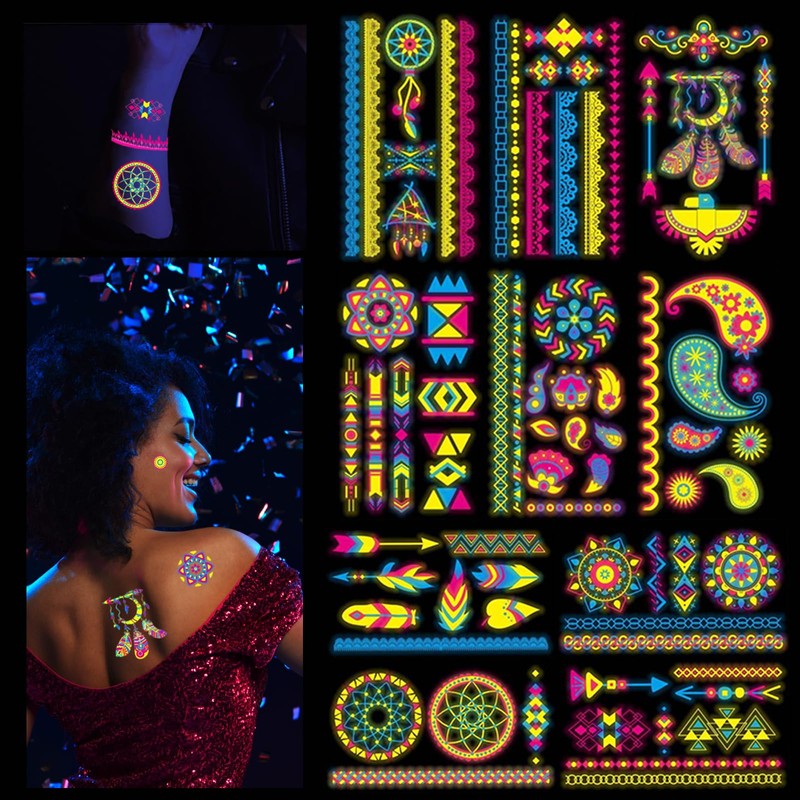 - 【Perfekt für Jeden Anlass】: Perfekt für Halloween, Weihnachtsfeiern, Sommerfeste oder Cosplay-Abende. Egal, ob Make-up-Liebhaber oder Glow-Up-Anfänger –mit diesen UV-Tattoos strahlst du unter Schwarzlicht und ziehst überall die Blicke auf dich.