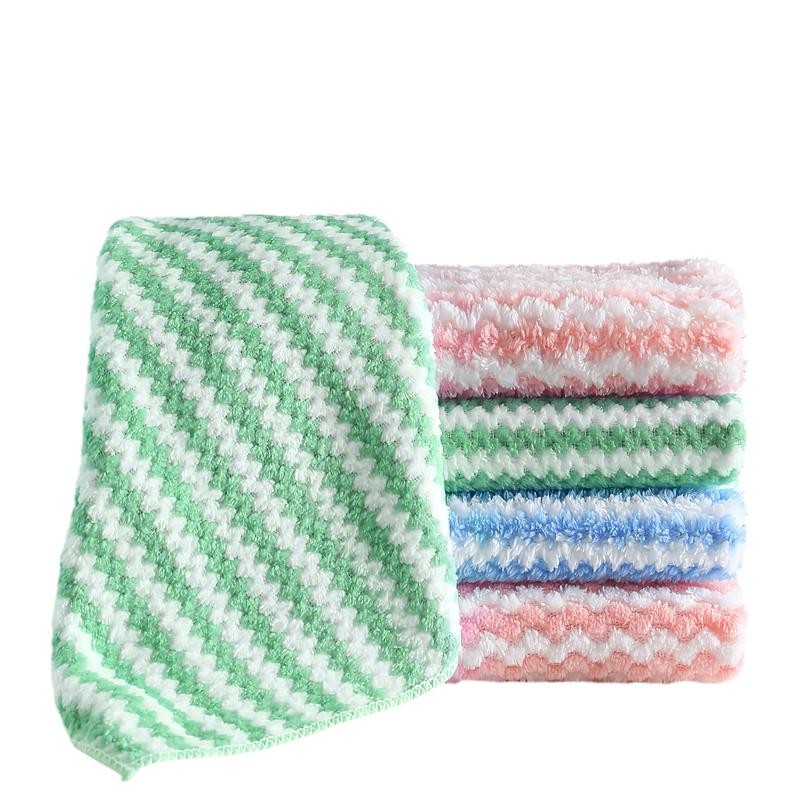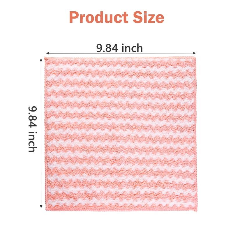 - 10 Counts Microfiber Cleaning Cloth, Kitchen Towels Absorbent Streak Free Cleaning Towels for Dish Drying Washing, 9.84" x 9.84" Striped Washable and Reusable Towels