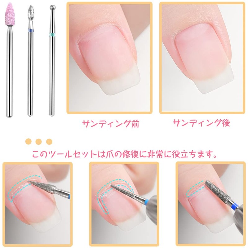 - 爪の表面のざらつき、ツヤのなさ、凹凸の問題を解決する。9種類のネイルドリルとクリーニングブラシがセットになっており、爪の形を整えるのに必要なものが揃っています。
