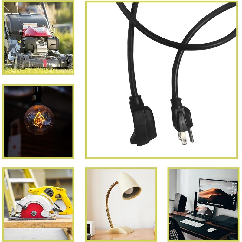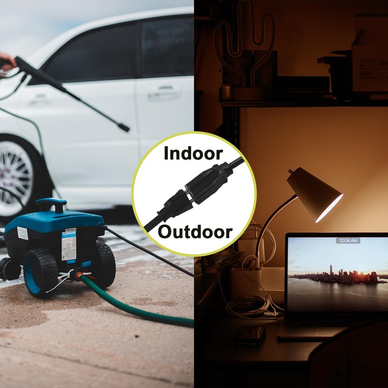 - 10 FT Black Extension Cord - Resist abrasion, moisture, and direct sunlight. Suitable for indoors and outdoor, powering appliances, garden tools and holiday decorations, you can rely on its durability and resilience.