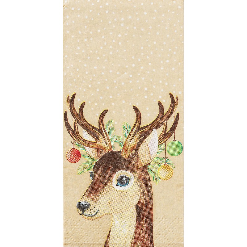 10 Handkerchiefs Deer with Christmas Baubles 22 x 21 cm