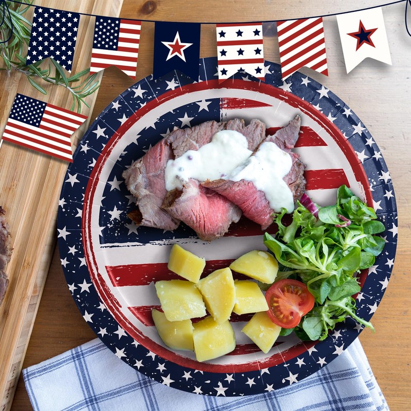 • Patriotic Heavy-Duty Plates Set: 25 * 10'' extra-thick dinner paper plates with Stars and Stripes design