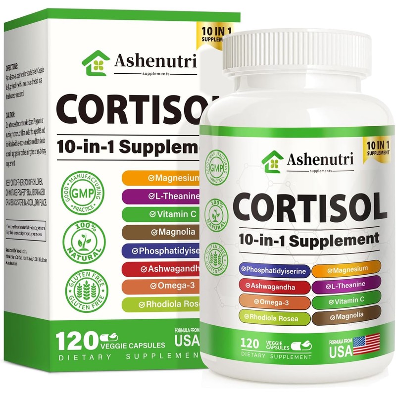 10-in-1 Cortisol Supplement with Magnesium,Ashwagandha,Rhodiola Rosea,L Theanine,Hormone Balance for Women 120 Vegan Capsules