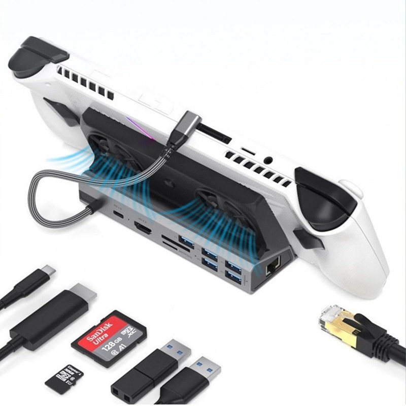 - [Multiple Functions] This 10 in 1 docking station combines a hub, fan cooler, and stand base, providing a neater and more organized desktop. Perfectly designed for Steam Deck and Rog Ally, it supports 30W mode for optimal performance.
