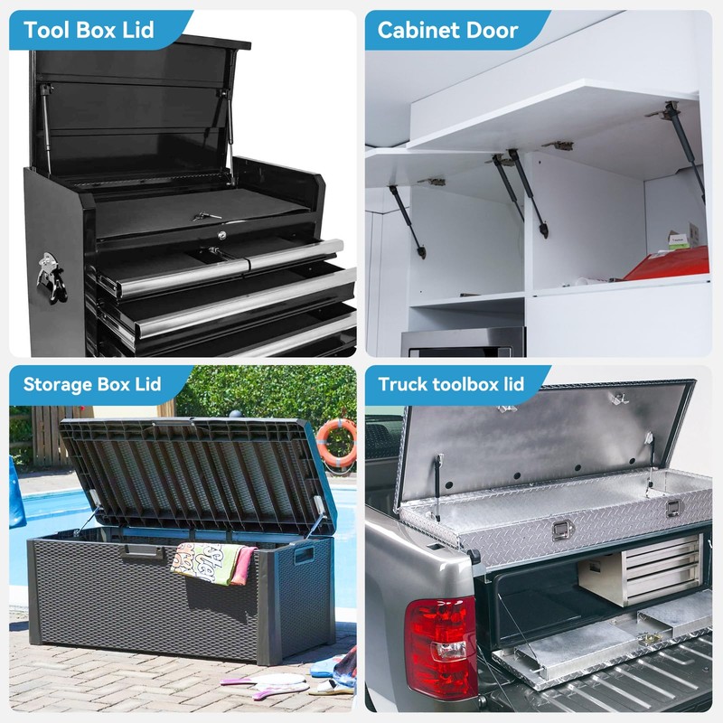 - 45 Lbs Gas shocks: You can use the gas spring on your truck toolbox lid, toy toolbox lid, rv cabinet door, rv motorhome compartment chest, boat hatch cover, boat storage cover, etc, display table and other light DIY builds! Measurement first required for your project lid before purchasing,You Could Also Try to Innovate With It, Opening Up a Variety of Uses for Gas Struts